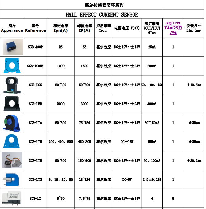 錦鋒推出---各類電流霍爾傳感器型號表一