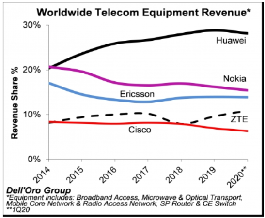 Dell'Oro是一家市場研究機構(gòu),多年跟蹤分析電信設(shè)備市場。最近,Dell'Oro發(fā)布了2020年一季度全球電信設(shè)備市場報告。